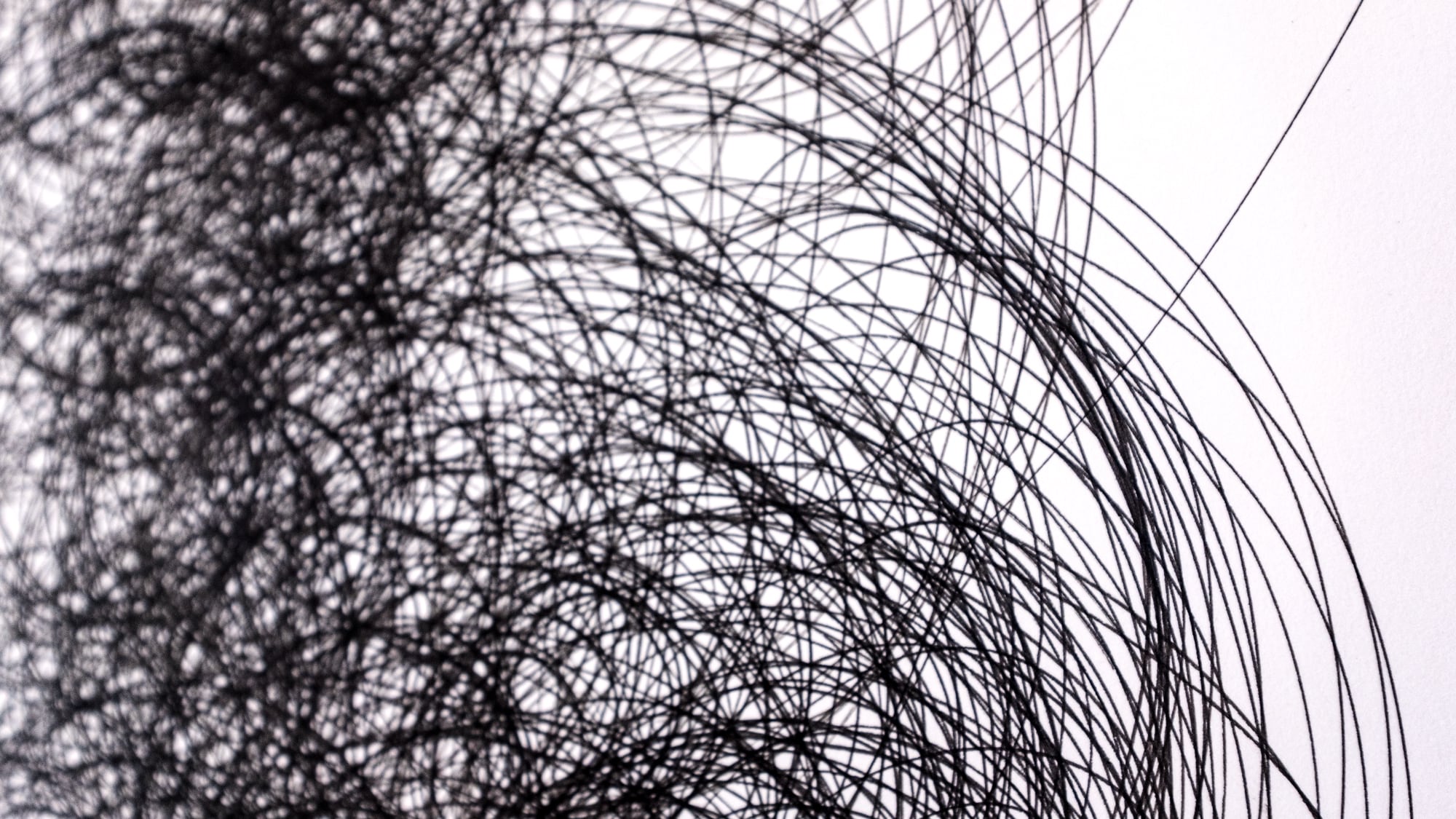 通常のドローイングではペンを落とす点を基準に陰影が作られていきますが、この技法では円の外周で構成が生まれ、作者が想定する以外の線の表情が生まれます。